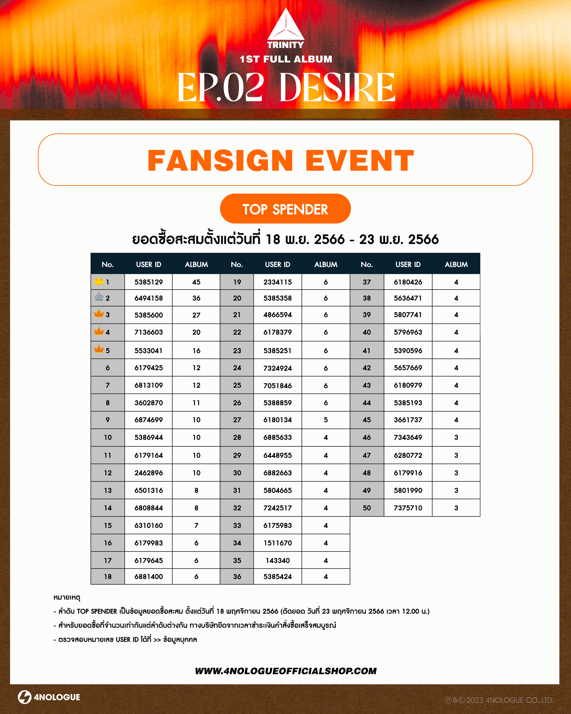 UPDATE TOP SPENDER TRINITY 1ST FULL ALBUM EP.02 DESIRE FANSIGN EVENT & VIDEO CALL SIGN